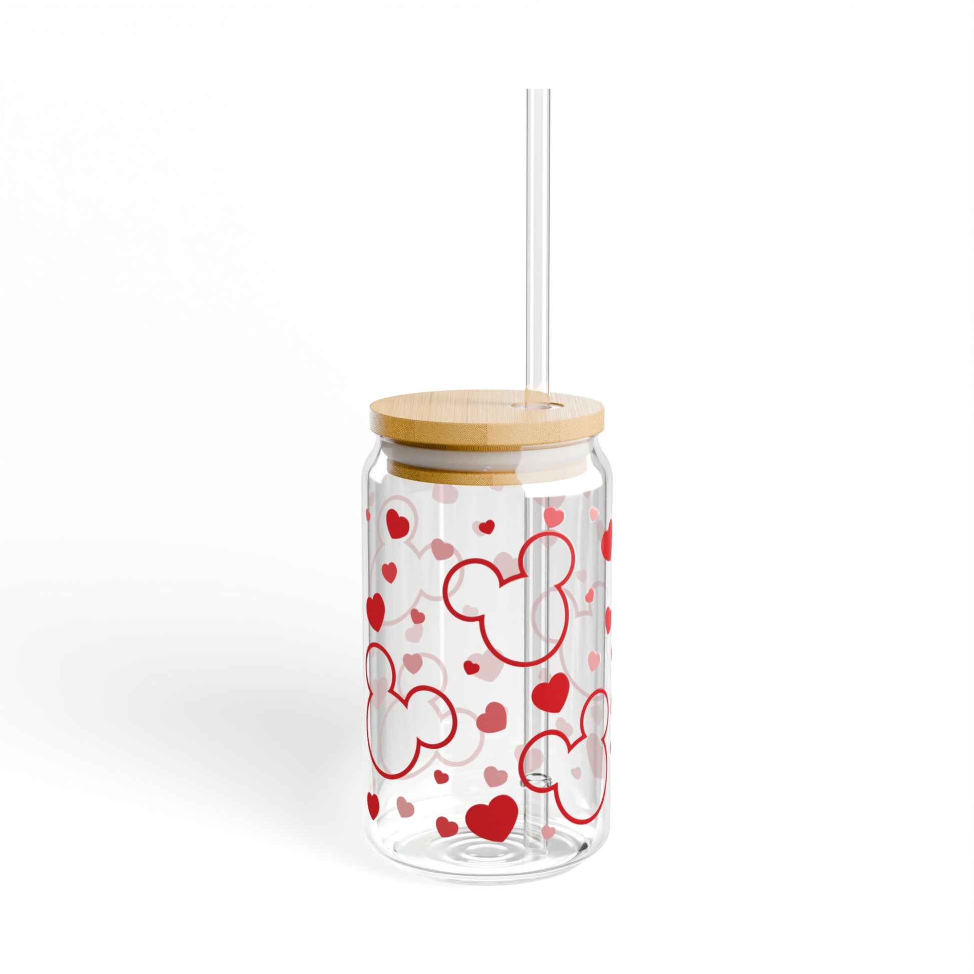 Cute Valentine Drink Jar — 16oz Heart Mouse Sipper Glass with Straw