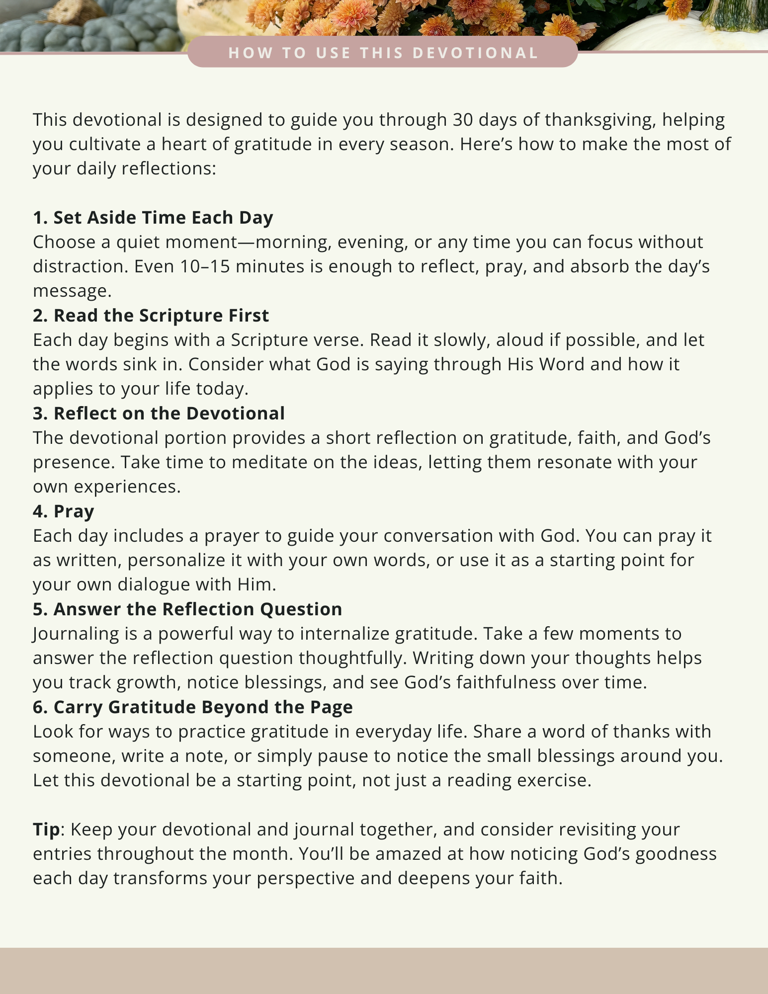 Over 30 intentional days, this devotional gently guides you through scripture-based reflections, inspiring insights, and heartfelt prayers that encourage you to see God’s blessings—both big and small—with fresh eyes. Each day invites you to pause, give thanks, and cultivate a heart that overflows with appreciation, peace, and joy.