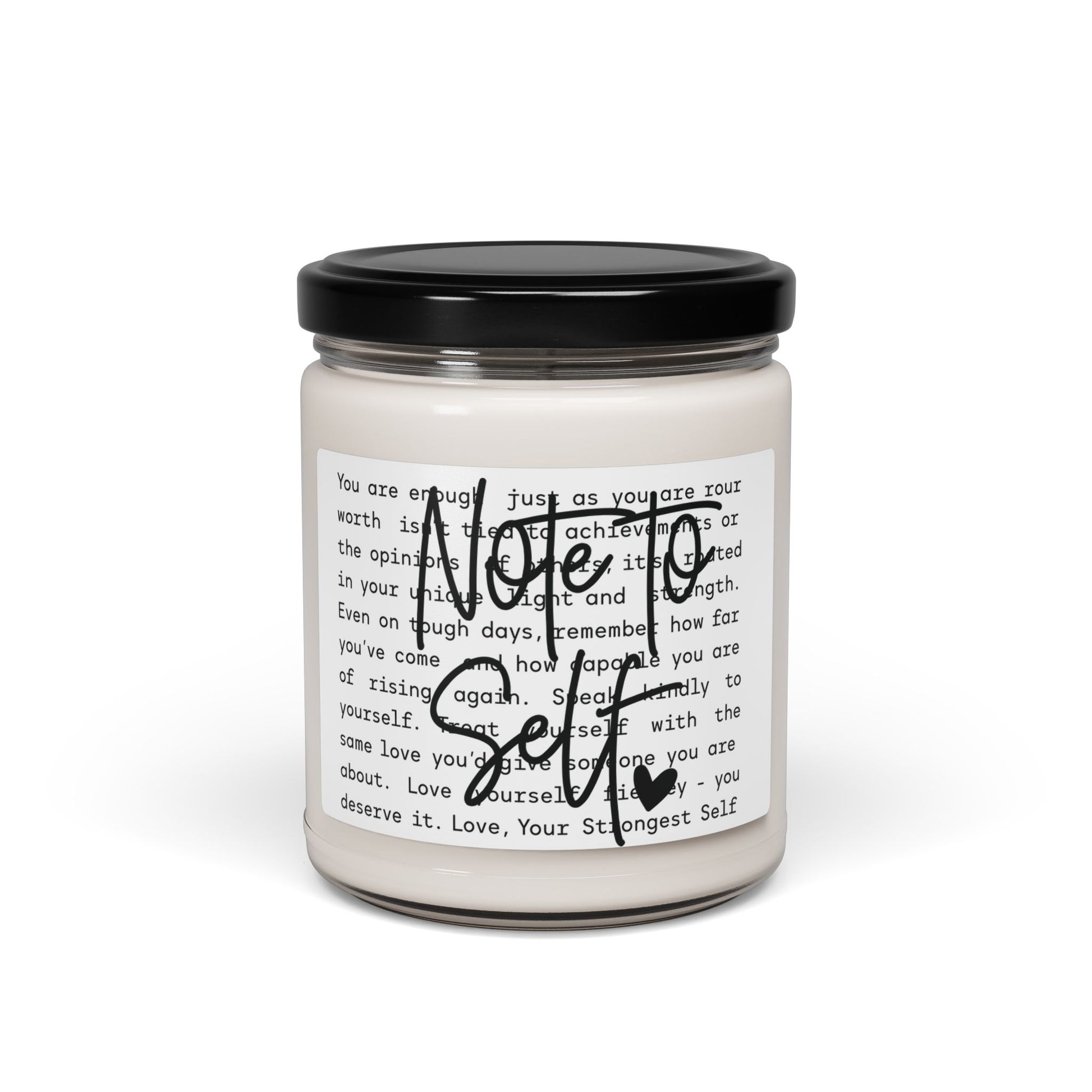 Light this 9oz soy candle when you need a quiet moment of strength. The clean glass jar bears a handwritten-style reminder — “Love Self” — layered over a gentle block of reassuring text. Each candle burns cleanly for 50–60 hours on a natural cotton wick, leaving a soft glow and an approachable fragrance that helps settle the mind and steady the day. When finished, the jar wipes clean to become a little vessel for pens, makeup brushes, or a tiny plant — a small, sustainable ritual that keeps the reminder close.