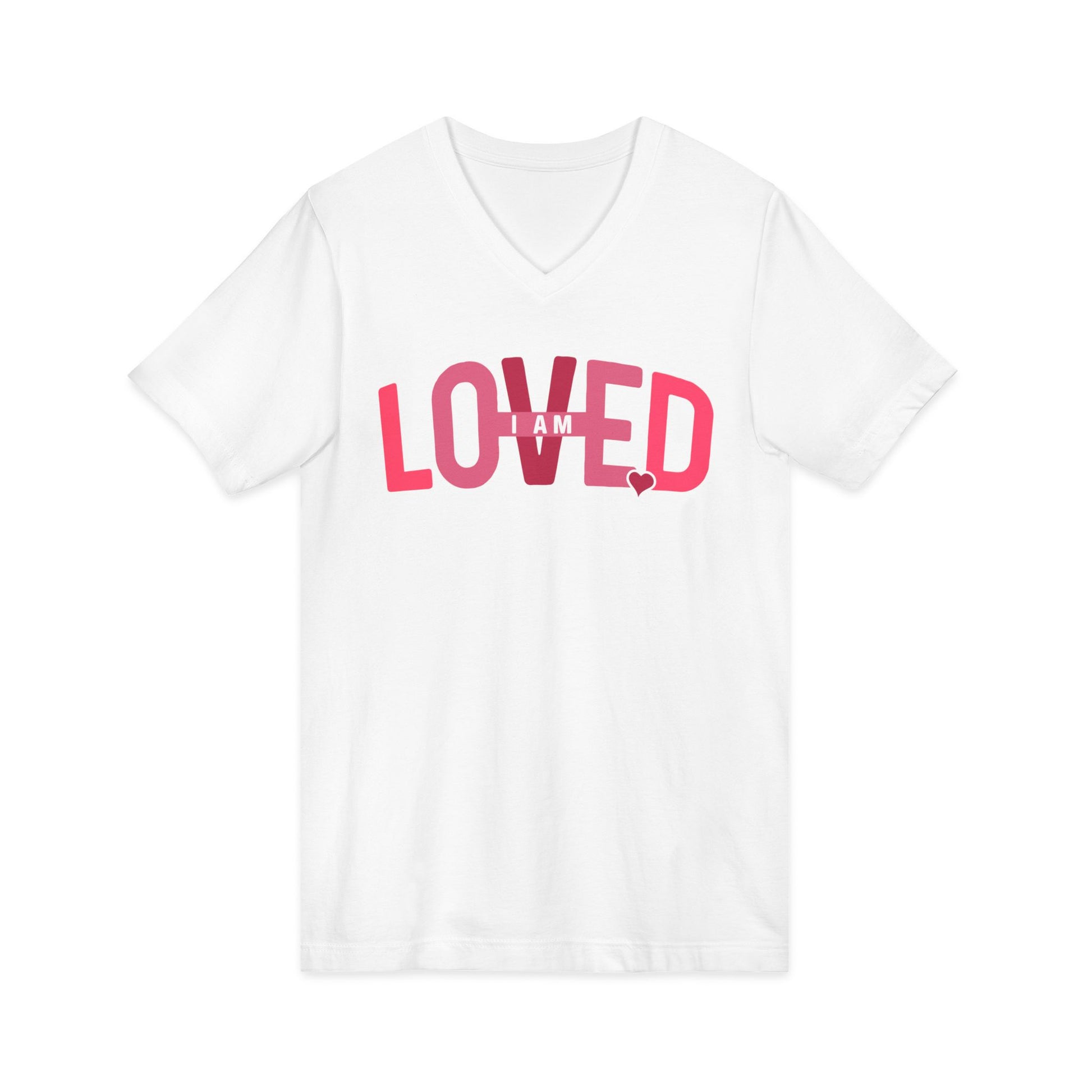 Loved V-Neck Tee — 'Loved' Pink Heart Graphic Women's Casual Top