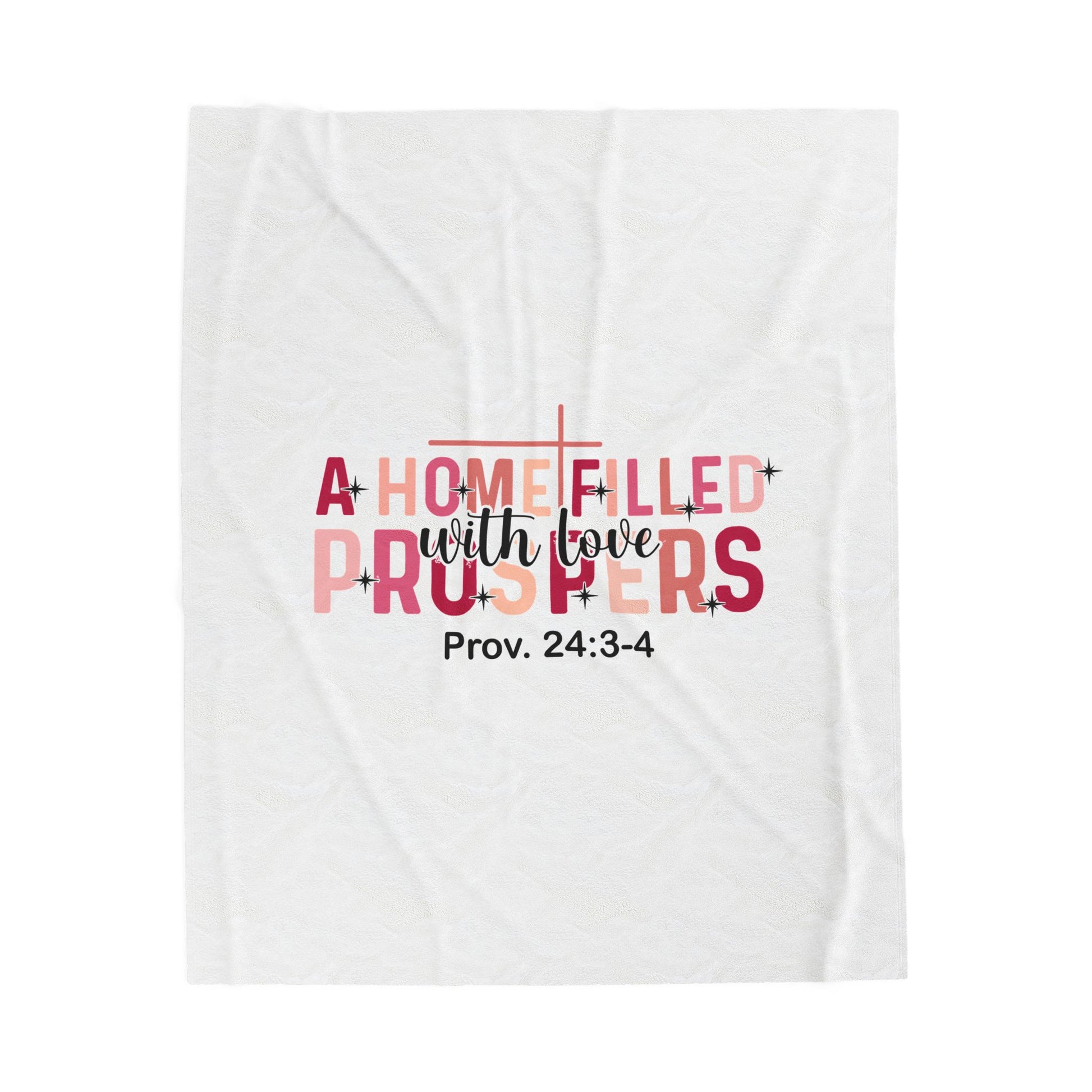Velveteen Plush Blanket — "A Home Filled With Love & Prayers" (Prov. 24:3-4) Inspirational Christian Throw